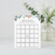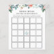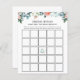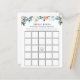 Brautparty Bingokarte mit Wasserfarbenkaskade aus Grünpflanzen und rosa Blumen mit Teekanne im Freien. Eine unterhaltsame Art, mit Duschgästen zu interagieren, während die Braut zu sein ihre Geschenke zu ihrem Polterabend öffnet.