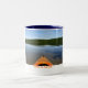 Kaffee-Tasse mit dem Foto des Kajaks auf ruhigem See, enscribed mit "Zeit Kayak." Zusammenpassende Geschenkartikel verfügbar.