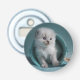 Ein Foto meines 3 Woche alten ragdoll Kätzchens warf in einem kleinen blauen Eimer auf