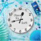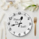 Versammelt euch um alle, es ist Zeit zu essen! Eine Uhr Gesicht mit Plastikgabel und Löffelhand.