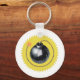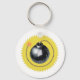 Ein Edgy Eye, das eine kreisförmige Zeitbombe für den Schlüsselanhänger entwirft, mit einer abgebrannten Sicherung, die durch den Künstler Jason Girard auf Sonnenstrahlen strahlt.