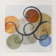 Boho inspirierte geometrisches Design mit grünen, beigen, blauen und orangefarbenen Kreisen und einzigartigen Texturen und Blumenüberlagerungen.