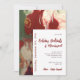 Modernes, raffiniertes Urlaubsparty-Design für die Weihnachtszeit in festlichen abstrakten Farbtönen. Die Farben sind tiefrot, waldgrün, gold, braun und Elfenbein. Das Textlayout ist einmalig für Tag, Datum und Uhrzeit des Ereignisses, das vertikal entlang des links Randes der Einladung verläuft. Das zeitgenössische Styling wird noch durch die Schriftgepaarung von handgeschriebenen Schriften mit schlanken Sans Serif ergänzt. Diese Einladungen können als gedruckte Einladungen oder digitale Downloads bestellt werden, um sie elektronisch zu versenden. Weitere passende Party-Elemente sind verfügbar und können durch Blättern unter dieser Produktanzeige angezeigt werden.