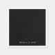 Zeitgenössische Personalisierte Schwarz-Weiß-Hochzeitscocktail-Servietten. Schwarzer Hintergrund. Weißer Text.