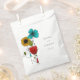 Mit personalisierten Papierbeutel verwöhnen Sie Gastgeschenke stilvoll. Diese Taschen haben einen sauberen und modernen Look. Sie sind mit einer Blumenbildervorlage inspiriert, die im Jugendstil-Design in schwarz, türkisblau, rot, hellgrün und goldgelb gehalten wird. Der benutzerdefinierte Text befindet sich in einem sauberen serifenlosen Schriftart.