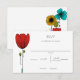 Diese individuell anpassbare Hochzeitskarte hat ein sauberes und modernes Aussehen. Es verfügt über eine Blumendarstellung inspiriert durch Art Nouveau Design in schwarz, hell türkis blau, rot, hellgrün und goldgelb und ein sauberes Sans Serif Schriftart. Es ist bereit, mit Ihrer Antwort bis zum Datum angepasst zu werden.