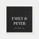 Zeitgenössische Minimalistische Schwarz-weiße Hochzeitsfeier Napkins . Das Design hat einen schwarzen Hintergrund mit Text in hübschem Schriftart in Weiß und Leerzeichen, um die Namen des Paares und das Hochzeitstermin . Diese niedlichen eleganten Hochzeitsapplikationen können einfach durch Namensänderung und Datum angepasst werden. Für weitere Anpassungen wenden Sie sich bitte an mich unter mypaperlove2021@gmail.com
