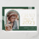 Zeitgenössische Chic Typografie "GRAD class of 2022", Abschluss 3 Foto Ankündigung und Party Einladung mit Goldfolie. Merkmale, moderne Bogenformen in einem waldgrünen und weißen Farbschema.
