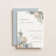 Moderne Chic Dusty Blue Watercolor Garten botanische florale Arrangements, Hochzeit Einladung. Funktionen, Koordination der grauen Typografie und staubige blaue Farbunterlage.