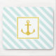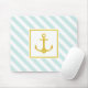 Nautische Pfefferminze und weiße Streifen Muster mit Imitaten Glitzer goldener Anker.