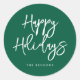 Happy Holidays Green Aufkleber. Eine moderne und mutige Typografie für diese personalisierbare Urlaubssammlung. Vollständig anpassbare Farben.