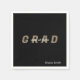 Einfache und zeitgenössische Abschluss mit weißem und goldfarbenem Text, personalisierte Cocktailserviette. Schwarzer Hintergrund.