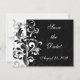 Stilvoll und modisch kontrastreiche Schwarzweiß-Swirl-Set-Kollektion. Zeigen Sie Ihren Stil mit diesem auffallenden und kühnen Design. Weiches und sanftes Curling und wirbelnde Formen in Weiß auf schwarzem Hintergrund. Dieser Artikel ist als komplette Hochzeitskollektion mit Einladungen, Favoriten und mehr erhältlich!