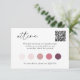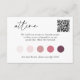 Ermuntern Sie Ihren Gast, bei Ihrer Hochzeit eine Farbpalette zu tragen, indem Sie diese kleine Karte mit QR CODE und Hochzeitsfarbenpalette zur Hochzeitseinladung hinzufügen. Dieses Design umfasst drei benutzerdefinierte Textfelder für Ihre Hochzeitsdetails, eine Website, einen QR-Code und eine 5 farbig bearbeitbare Palette. "Anziehen" in elegantem Skript-Schriftart mit modernen handgeschriebenen Schriftzeichen,