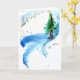 Senden Sie einen herzlichen Gruß und die Jahreszeit mit diesem wunderschönen Weihnachtsbaum, der inmitten eines winterlichen Meeres von Bäumen scheint. Original Gemälde in Gouache und Pastellfarben von Anne Bell.