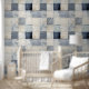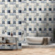 Zeitgenössisches blaues Indigo-Collage-Papier-Text Tapete