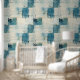 Zeitgenössisches blaues Indigo-Collage-Papier-Text Tapete