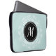 Trendy Laptop-Ärmel mit Minz blauen Blumenkranz und personalisiertem Monogramm.