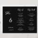 Dreifaches Hochzeitsmenü & Tischnummer: Alles in einem, falten Sie das Blatt in 3, um Ihre stehende Speisekarte zu erhalten. Eine kühne und trendige Typografie für Ihre Hochzeitsarbeit, einfach aber elegant mit einem Schwarz-Weiß-Thema. Vollständig anpassbar: Sie können bei Bedarf die Farben des Schriftartes und des Hintergrunds ändern.