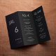 Zeitgenössisches Schwarzes Menü und Tischnummer dr