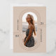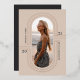 Ein schlichtes und elegantes Abschluss-Ankündigungsdesign mit kunstvollen Deko-Einflüssen, mit dem Namen Ihres Absolventen, dem Jahr der Abschluss-Klasse und der Schule, angeordnet um ein gewölbtes Element, das mit Rose goldgelben Linien-Kunst, mit einem senkrechten Foto in der Mitte verziert ist. Personalisieren Sie die Rückseite mit einer benutzerdefinierten Nachricht und einem zusätzlichen Foto.