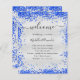 Ein silbernes Imitat, mit königsblauen Konfetti dekoriert, Glitzern. Schwarzer Text. Personalisieren und fügen Sie Ihre Namen und das Hochzeitsprogramm.