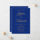 Diese elegante Hochzeitseinladung ist zeitlos, ihr Design ist einfach und minimalistisch. Das Design zeichnet sich durch individuell anpassbare Hochzeitseinladungen in klassischer Goldskripttypografie aus; auf immer elegantem und raffiniertem königsblauen Hintergrund.