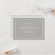 Elegante und einfache Hochzeitszimmerausweiskarte in schick-neutralem Greige Grau-Beige mit geometrischen Rahmen, die Ihre Empfang-Details in klassischer Schrift umrahmen. Personalisieren Sie Ihre Empfang-Zeit, Veranstaltungsort, Adresse und andere wichtige Details wie Transport. Entworfen, um mit unserer zeitlosen Hochzeitseinladung Sammlung zu koordinieren.
