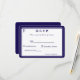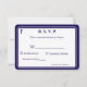 Das Design auf der Vorderseite zeigt das traditionelle Format für eine Hochzeitsantwortkarte in einer dunkelblauen Schrift vor einem weißen Hintergrund. Das Bild eines Kreuzes wird in der oberen Ecke angezeigt. Das gesamte Design ist von einem eleganten dunkelblauen und weißen Rahmen umgeben.