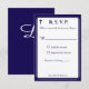 Das Design auf der Vorderseite zeigt das traditionelle Format für eine Hochzeitsantwortkarte, dargestellt in einer navy-blauen Schrift auf weißem Hintergrund. Das Bild eines Kreuzes wird in der oberen Ecke angezeigt. Das gesamte Design ist von einem eleganten navy-blauen und weißen Rahmen umgeben.