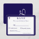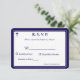 Das Design auf der Vorderseite zeigt das traditionelle Format für eine Hochzeitsantwortkarte in einer navyblauen Schrift auf weißem Hintergrund. Das Bild eines Kreuzes wird in der oberen Ecke angezeigt. Das gesamte Design ist von einem eleganten navyblauen und weißen Rahmen umgeben.