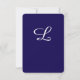 Die Rückseite zeigt einen navyblauen Hintergrund mit dem Anfangsbuchstaben des Nachnamens des Paares in einer eleganten weißen Schrift. Entworfen, um mit der zeitlosen katholischen monogrammierten Hochzeitspapeterie zu koordinieren.