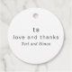 Moderne Gastgeschenk Hochzeit-Tags mit einem schlichten und eleganten Design mit der Meldung "Liebe und Dank" zusammen mit Ihrer Monogramm und Namen.