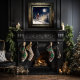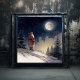 Dies ist ein detailliertes Bild, das den schwarzen Weihnachtsmann in einem schneebedeckten Wald darstellt. Der Weihnachtsmann trägt einen roten Hut, Handschuhe, Gläser und einen Gürtel. Die schneebedeckte Umgebung unterstreicht das Weihnachtsthema des Gemäldes. Das Kunstwerk besticht durch seine warmen Farben und die gemütliche Atmosphäre. Das Bild ist reich an Details und zeigt die faszinierenden Merkmale des Weihnachtsmanns, wie er im schneebedeckten Wald steht.