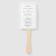 Eleganter Hochzeitshandfan mit einem einfachen Design mit Ihren Veranstaltungsdetails in Serif- und Script-Schriftart innerhalb einer Grenze.