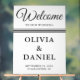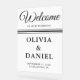 Herzlich willkommen bei Ihren Gästen mit klassischer Eleganz und diesem zeitlosen Begrüßungszeichen. Mit fließender Schrift und einem raffinierten Layout ist es perfekt für romantische und traditionelle Zeremonien. Personalisieren Sie sich einfach mit Ihren Namen, Datum und Ort.