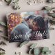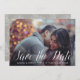 Eine elegante Hochzeitskarte Save the Date Postkarte, die für Ihr Lieblings-Foto in horizontaler oder landschaftsorientierter Vollblut-Verlobung konzipiert ist. "Save the Date" erscheint in weißem, handgeschriebenem Kalligrafieschrift mit Ihren Namen, Hochzeitstermin und Ort darunter. Karten kehren zu einem subtilen botanischen Muster mit Platz, um Ihre Hochzeitswebsite url oder alle zusätzlichen Informationen, die Sie wählen. Sie können die hintere Farbe ändern, indem Sie auf Anpassen/Anpassen klicken und dann die neue Hintergrundfarbe entweder aus der Palette oder durch Eingabe eines Farbhex-Codes auswählen.