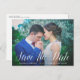Eine elegante Hochzeitskarte Save the Date Postkarte, die für Ihr Lieblings-Foto in horizontaler oder landschaftsorientierter Vollblut-Verlobung konzipiert ist. "Save the Date" erscheint als weißes Textüberlagerungsschreiben in handgeschriebenem Kalligraphieskript. Personalisieren Sie mit Ihren Namen, Hochzeitsdatum und Hochzeitsort unten. Postkarten werden zurückgesetzt, um zusätzliche Save the Date Details, einschließlich Ihrer Hochzeitswebsite, mit Ihrer Rücksendeadresse und Platz für die Empfänger-Adressierung anzuzeigen.
