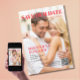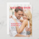 Eine moderne, einzigartige Hochzeit speichern Sie die Dattelkarte, die wie ein Titelbild eines Magazins aussieht. Die Karte zeigt ein beliebtes Foto des glücklichen Ehepaares mit SAVE THE DATE als Magazintitel in einer lebendigen Koralle. Ideal für ein leichtes Foto. Personalisieren Sie mit Ihren Namen, Hochzeitstermin, Ort und QR-Code für Ihre Website.