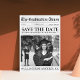 Eine moderne Foto Zeitung "Abschluss Save the Date" bietet eine stilvolle Mischung aus persönlicher Fotografie und redaktionellen Designs. Oft enthält es ein auffälliges Bild des Absolventen, typischerweise in ihrer Kappe und Kleid, kombiniert mit kühnen Typografie für die Veranstaltungsdetails. Das Design imitiert ein Zeitungslayout mit Schlagzeilen, Säulen und kleineren Fotos und schafft so ein zeitgenössisches, aber nostalgisches Ambiente. Die Meldung "rett-the-date" wird deutlich angezeigt und unterstreicht die bevorstehende Feier. Dieses Format fügt eine einzigartige, kreative Touch hinzu, um das Datum des Abschlusses zu verkünden und gleichzeitig einen personalisierten, künstlerischen Flair anzubieten.