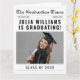 Erleben Sie die Feier Ihres Absolventen mit unserer dynamischen Zeitung Template for Graduation Party! Diese personalisierte Zeitungsankündigung ist die perfekte Gelegenheit, die Reise und Leistungen Ihres Absolventen zu präsentieren. Unsere Vorlage enthält Leerzeichen für Fotos des Absolventen. Teilen Sie ihre herausragenden Leistungen, von akademischen Auszeichnungen bis zu extrakurrikulären Triumphen, und feiern Sie ihre harte Arbeit und Hingabe. Markieren Sie ihre Lieblings-Erinnerungen und Großveranstaltungen von der Highschool aus. Das Layout enthält auch einen speziellen Abschnitt für eine herzliche Nachricht über das neue Kapitel in ihrem Leben, das jetzt beginnt. Dieses vielseitige und fesselnde Template dient als Requisite, um den Fotos Spaß zu machen, wo sie die Zeitung halten und an der Feier teilnehmen können. Mit seinem eleganten Zeitungsdesign verbindet es Tradition nahtlos mit zeitgenössischem Flair und sorgt für ein herausragendes Merkmal Ihrer Abschlussfeier. Entfesseln Sie Kreativität und Nostalgie mit unserem Newspaper Template, ein Muss zu jedem Abschluss-Bash. Bestellen Sie jetzt und verwandeln Sie Ihre Veranstaltung in eine unvergessliche Reise durch die Vergangenheit und einen spannenden Sprung in die Zukunft!