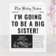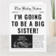 Machen Sie Ihre große Schwesterankungsankündigung zu einem lustigen und unvergesslichen Ereignis! Unser Zeitungsdesign ermöglicht es Ihnen, Fotos zu präsentieren und die Neuigkeiten auf einzigartige Weise zu teilen. Mit individuell anpassbaren Vorlagen können Sie der Ankündigung Ihre eigene persönliche Touch hinzufügen. Teilen Sie die Freude mit Familie und Freunden mit dieser lustigen und kreativen Ankündigung. Jetzt kaufen und anfangen, Ihre eigene personalisierte Schwesterankungsankündigung zu kreieren.