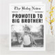 Machen Sie Ihre große Bruderschwangerschaft zu einem lustigen und unvergesslichen Ereignis! Mit unserer Zeitungskarte "Promoted to big Bruders" können Sie Fotos präsentieren und die Neuigkeiten auf einzigartige Weise weitergeben. Mit individuell anpassbaren Vorlagen können Sie der Ankündigung Ihre eigene persönliche Touch hinzufügen. Teilen Sie die Freude mit Familie und Freunden mit dieser lustigen und kreativen Ankündigung. Bestellen Sie jetzt und beginnen Sie Ihre eigene personalisierte Schwangerschaftsankündigung.