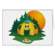 Ein skurriles Cartoon-Zelt in einer mondbeleuchteten Nacht zwischen den Kiefern.