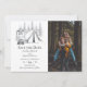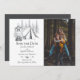 Zelt, Lattern und Woodland Sketch Camping Save the Date Foto Hochzeitsankündigung in Grau und Weiß.