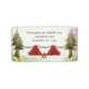 Camping Woodland-Adressetikett mit Zelten mit Bunten, Campfire, Bäumen und Blume.