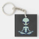 "Dieses ruhige Design besticht durch eine Alien im Stil eines Cartoon mit einem hellblau-grünen Teint, großen schwarzen Augen und einem ruhigen Ausdruck, der in einer Lotus-Pose sitzt. Seine Hände ruhen sanft auf den Knien in einem meditativen Schlamm. Dieses Design vermittelt ein Gefühl von Frieden, Achtsamkeit und anderer weltlicher Ruhe. Dieses vielseitige Design könnte für Produkte verwendet werden, die Entspannung, Meditation oder eine Touch kosmischer Laune fördern. Stellen Sie sich das auf Yoga-Kleidung, Meditationskissen, beruhigender Wohngestaltung oder inspirierender Schreibwaren vor."