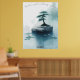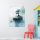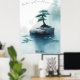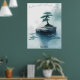 Dieses minimalistische Zen-Poster mit einem einsamen Bonsai-Baum auf einem glatten Felsen neben einem ruhigen Bach schafft ein friedliches Ambiente, ideal für einen Meditationsraum oder Achtsamkeitsübungsraum.