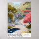 Zen-Garten-Landschaftsposter rosa Baum, geharkter Poster