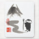 Ein Zenpilger kreuzt einen großen Abstand und nähert sich einem Schnee mit einer Kappe bedeckten Berg. Es ist eine Metapher für das Erzielen von Erleuchtung, selbstverständlich! Die ursprüngliche Malerei war mit Chinesebürsten-Malereitechniken auf Papier des weißen Reises erfolgt, und sie wird freundlich auf diesen Porzellanverzierungen übertragen.